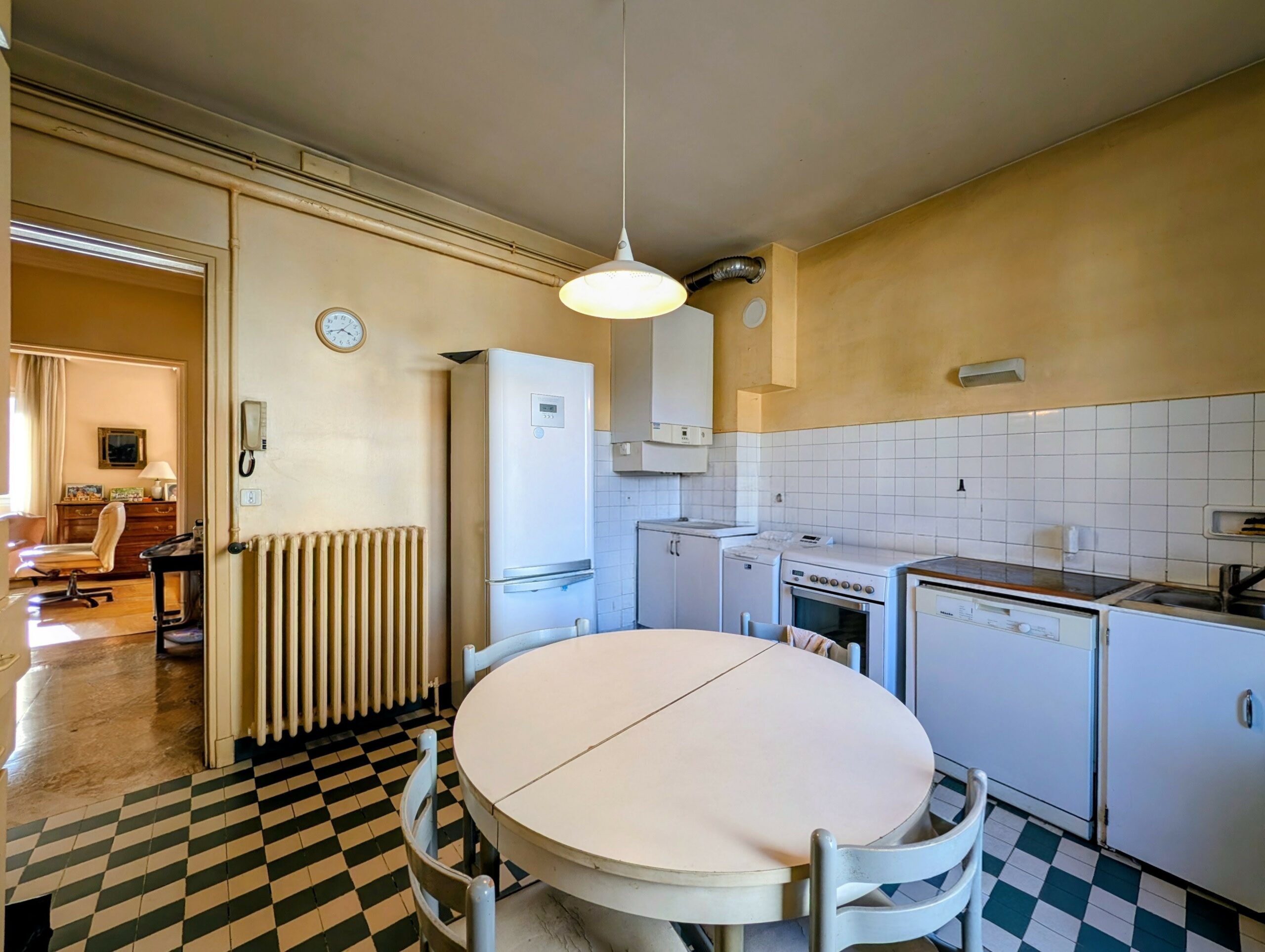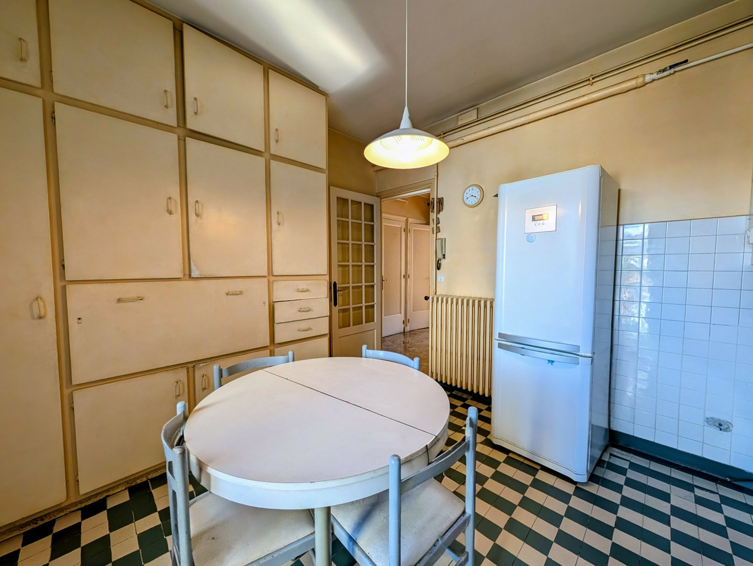 L’appartement nécessite des travaux de remise au goût du jour mais dispose d’un excellent potentiel après rénovation.