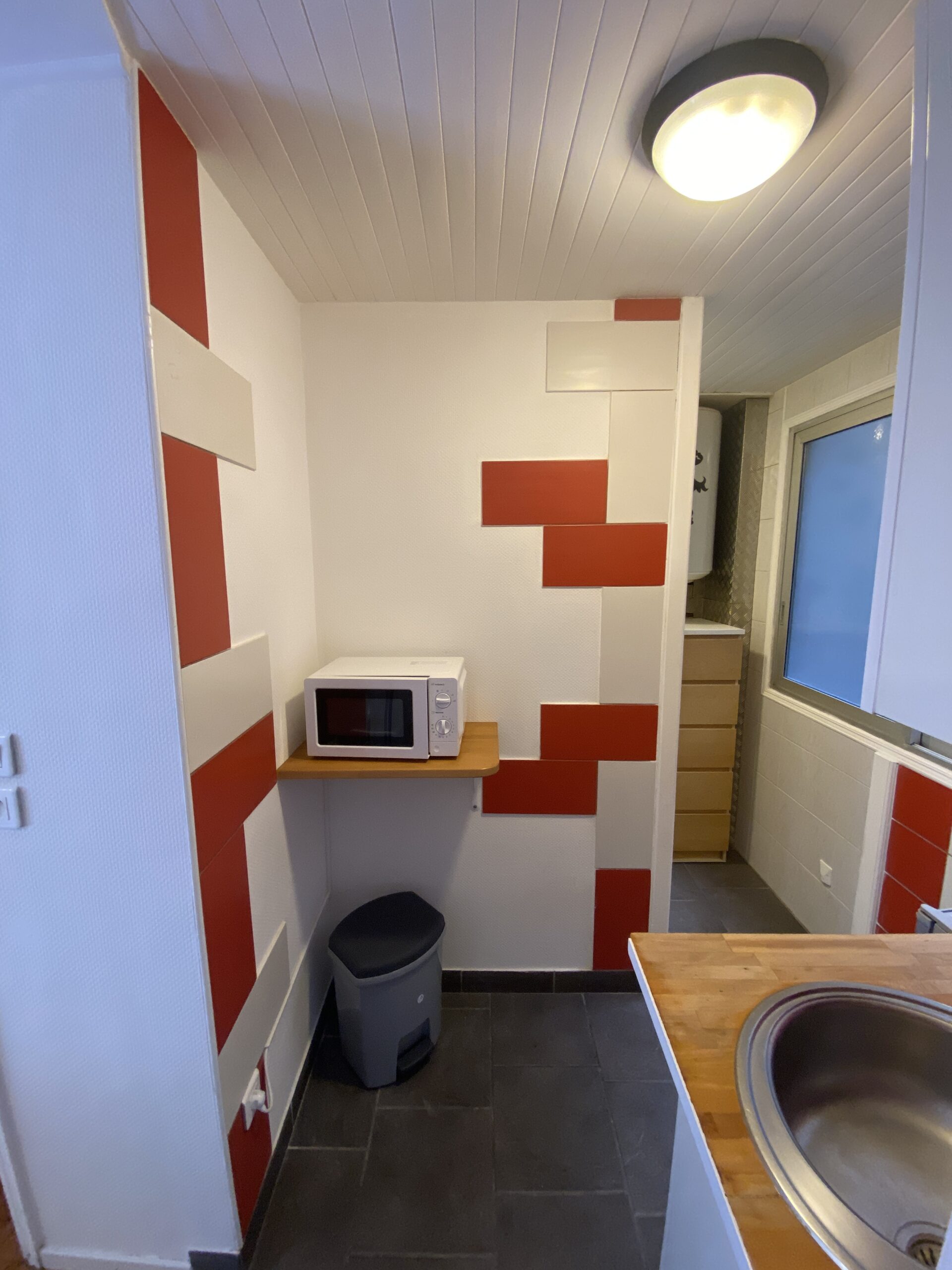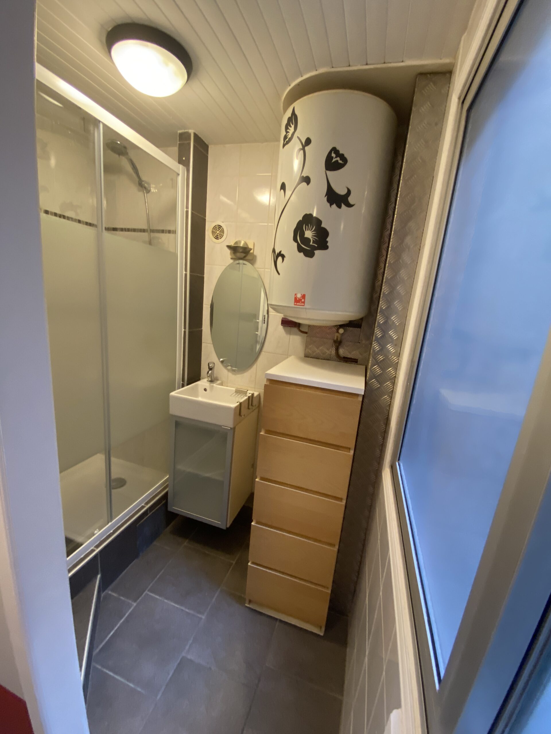 Il est composé d’un séjour de 11,39 m² avec coin cuisine, une chambrette de 7,5 m² ainsi qu’une salle d’eau et un Wc séparé.