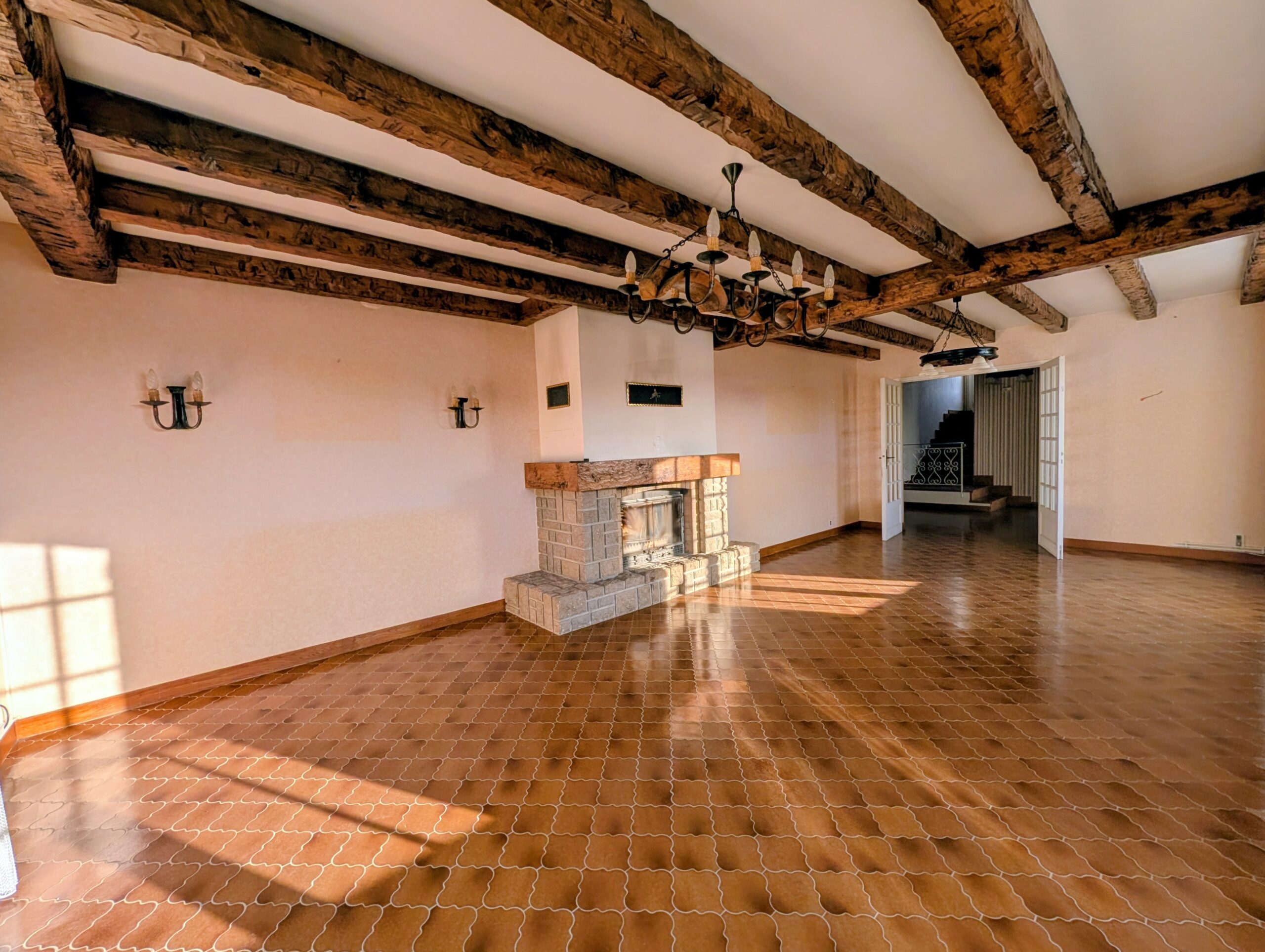Au 1er étage, l’espace de vie principal se compose d’un grand séjour lumineux avec insert bois donnant accès à une terrasse exposée plein SUD, d’une cuisine séparée, de quatre chambres, dont une avec balcon, ainsi que d’une salle de bains et d’un WC séparé.