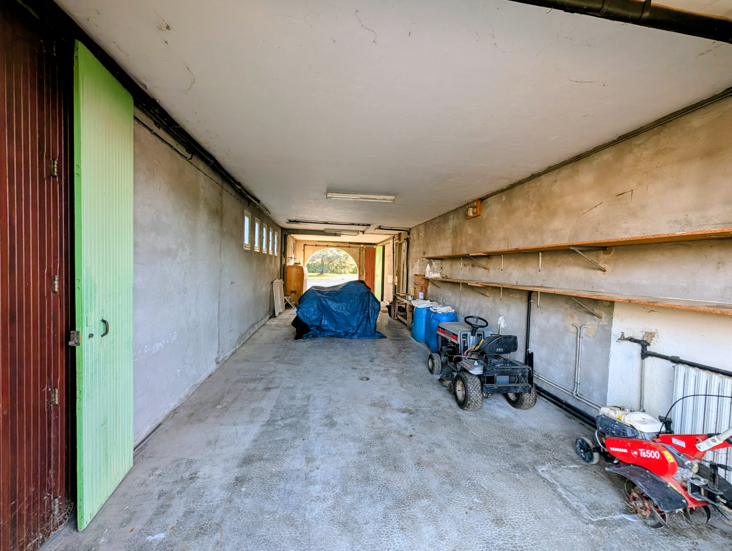 Un grand garage double avec porte haute permet d’accueillir tout type de véhicule.